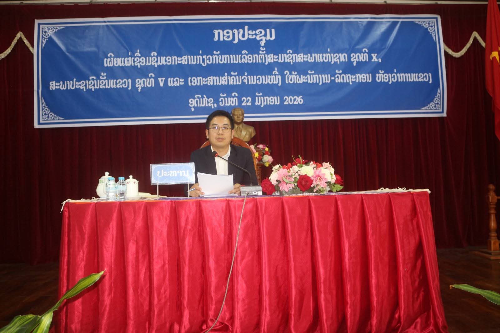 ໃນວັນທີ 22 ມັງກອນ 2026, ທີ່ຫ້ອງປະຊຸມຫ້ອງວ່າການປົກຄອງແຂວງ, ໄດ້ຈັດກອງປະຊຸມເຊື່ອມຊຶມເອກະສານສຳຄັນຂອງພັກ, ກົດໝາຍຂອງລັດ ແລະ ເອກະສານມູນເຊື້ອວັນສຳຄັນຕ່າງໆຂອງຊາດ. ກອງປະຊຸມຄັ້ງນີ້ ໃຫ້ກຽດເປັນປະທານໂດຍ ທ່ານ ພິໄລທອງ ຈິດມະນີ, ກຳມະການສຳຮອງສູນກາງພັກ, ຫົວໜ້າຫ້ອງວ່າການແຂວງ; ມີບັນດາຄະນະຫ້ອງວ່າການ, ພະແນກການ, ພ້ອມດ້ວຍພະນັກງານ-ລັດຖະກອນພາຍໃນຫ້ອງວ່າການເຂົ້າຮ່ວມຢ່າງພ້ອມພຽງ.